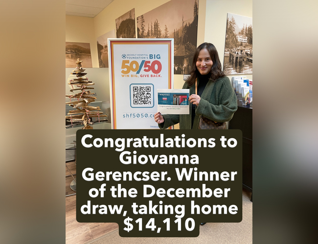 By purchasing your ticket, you not only get the chance to win half the jackpot, but also to make a meaningful impact on purchasing medical equipment needed to help keep our communities healthy. All proceeds of the BIG 50/50 will be directed to support care and equipment for Sechelt | shíshálh Hospital.